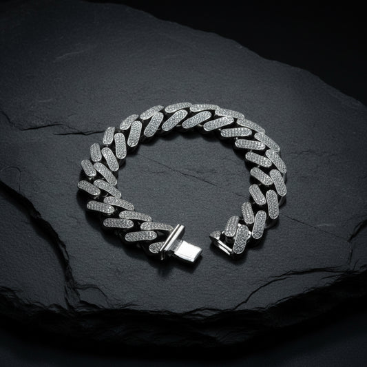 Solid Silver Iced Out Moissanite Miami Cuban Link Bracelet