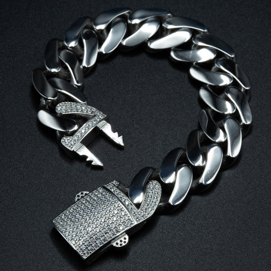 925 Solid Silver 18MM Heavy Cuban Curb Chain Wide Bracelet