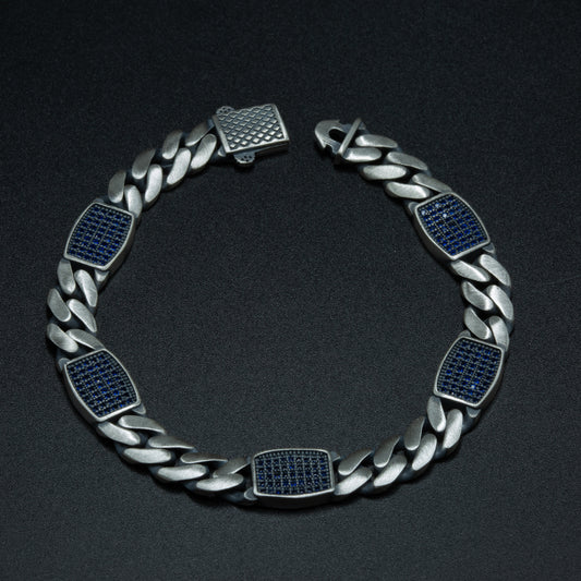 Men Handmade Sapphire Stone 10MM Cuban Link Chain Bracelet