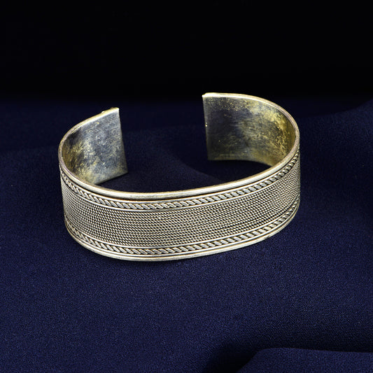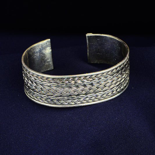 Silbernes 22 mm dickes Manschettenarmband mit Strickmuster