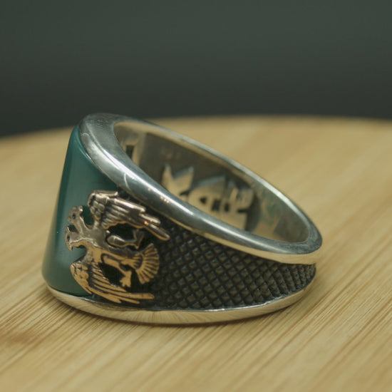925 Silver Emerald Gemstone Double Eagle Signet Ring