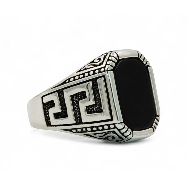 Men Silver Greek Style Square Onyx Gemstone Ring