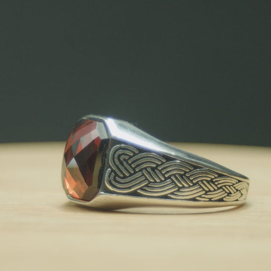 Each piece is handmade by skilled artisans, showcasing intricate Ottoman-inspired detailing that reflects centuries of craftsmanship. Perfect as a men’s red stone ring, statement ring, or special gift, it offers a unique blend of tradition and modern masculinity.