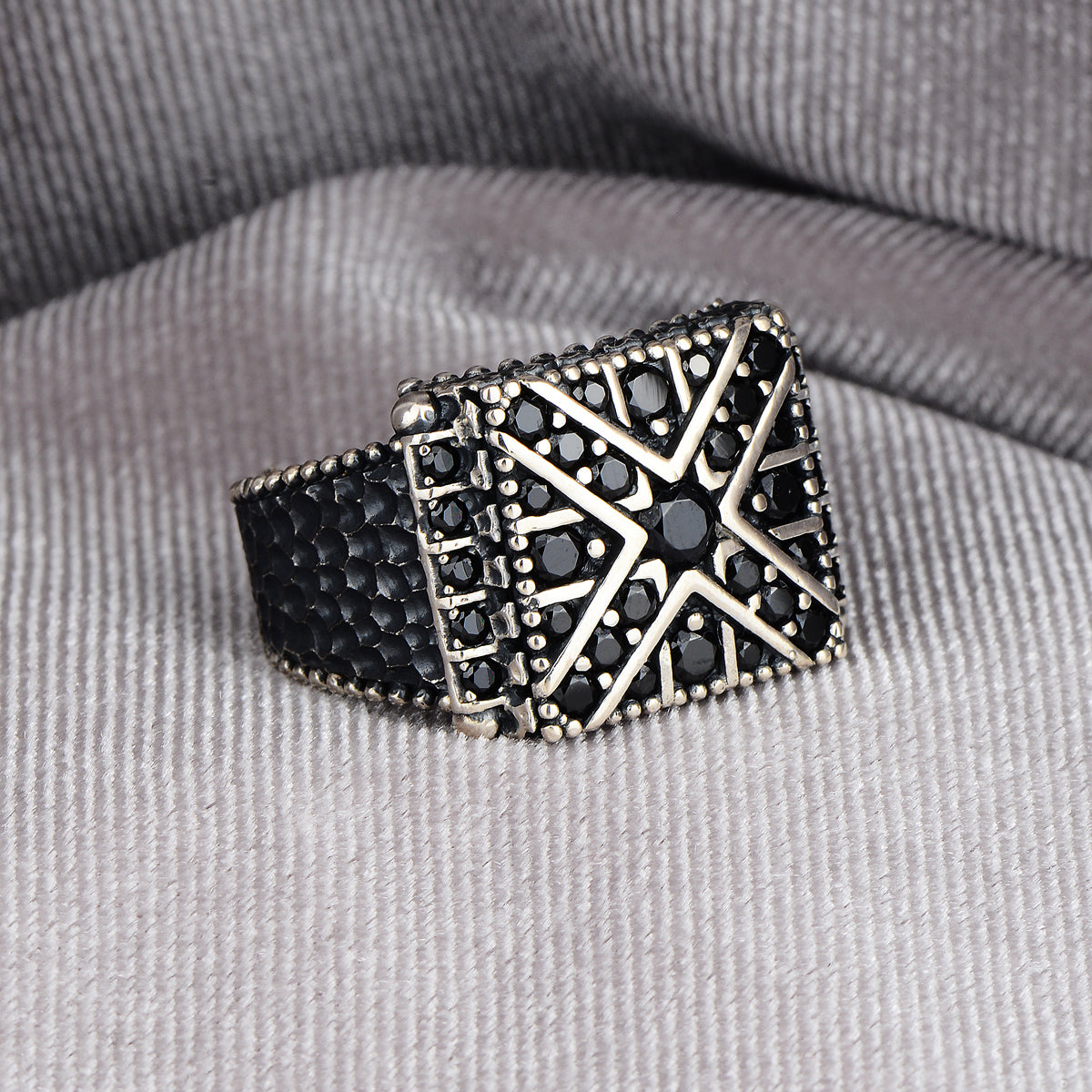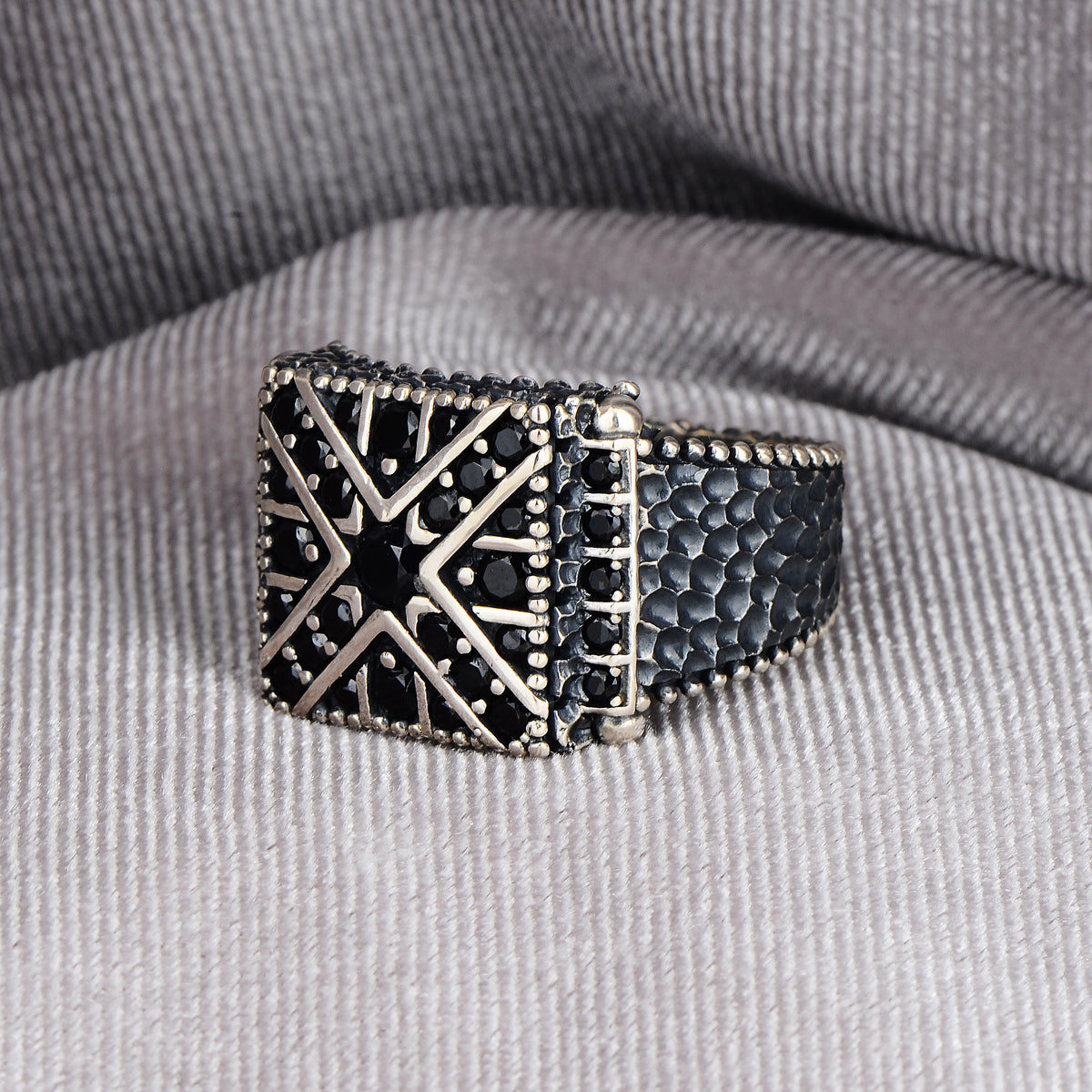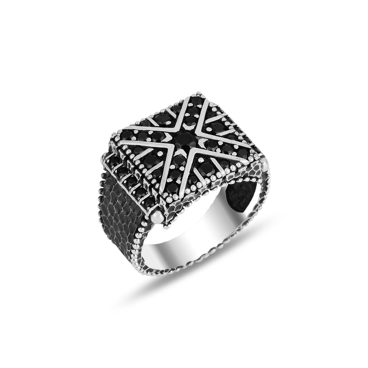 Quadratischer Onyx-Edelstein-Ring, handgefertigter Herrenring, Onyx-Stein-Ring, osmanischer Herren-Sterlingsilberring, 925k-Sterlingsilberring, Geschenk für Ihn