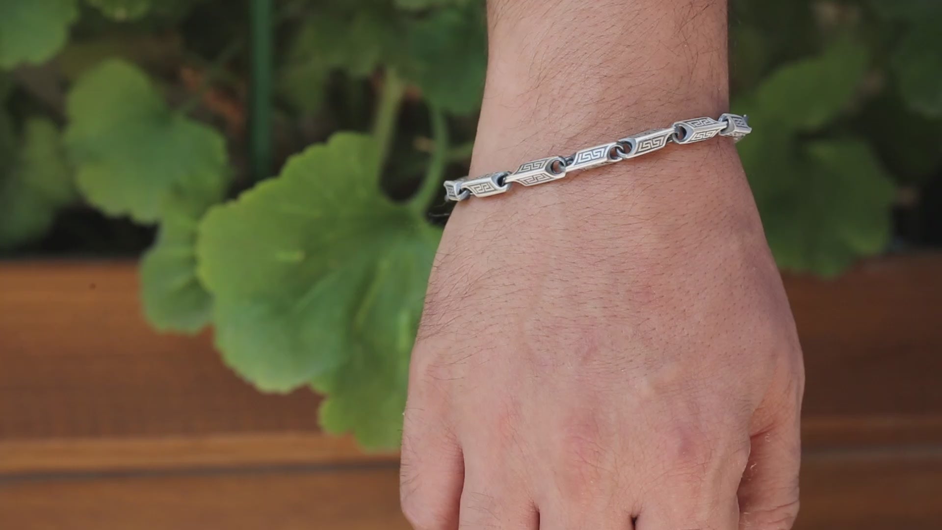 Men Silver Byzantine Bracelet, Greek Engraved Bracelet, Perfect Men Bracelet, Oxidized Chain Bracelet, Gift For Men, 925 Silver Bracelet