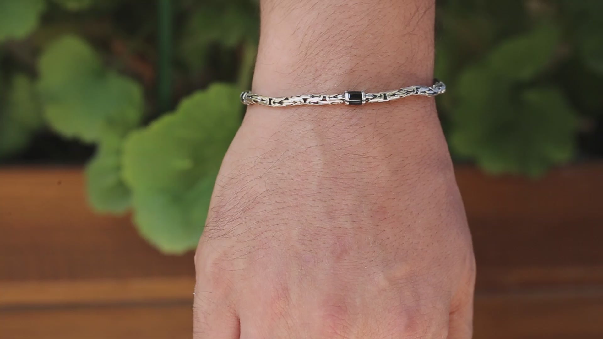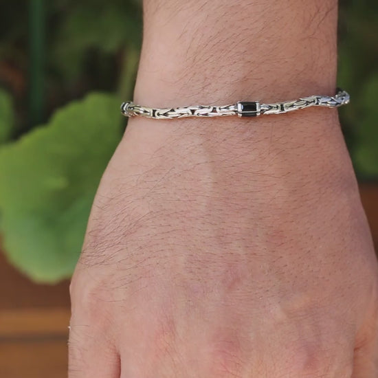 925 Silver Black Onyx King Chain Bracelet, Byzantine 5MM Byzantine Chain Bracelet, Bali Chain Bracelet, Men Solid Sterling Silver Chain
