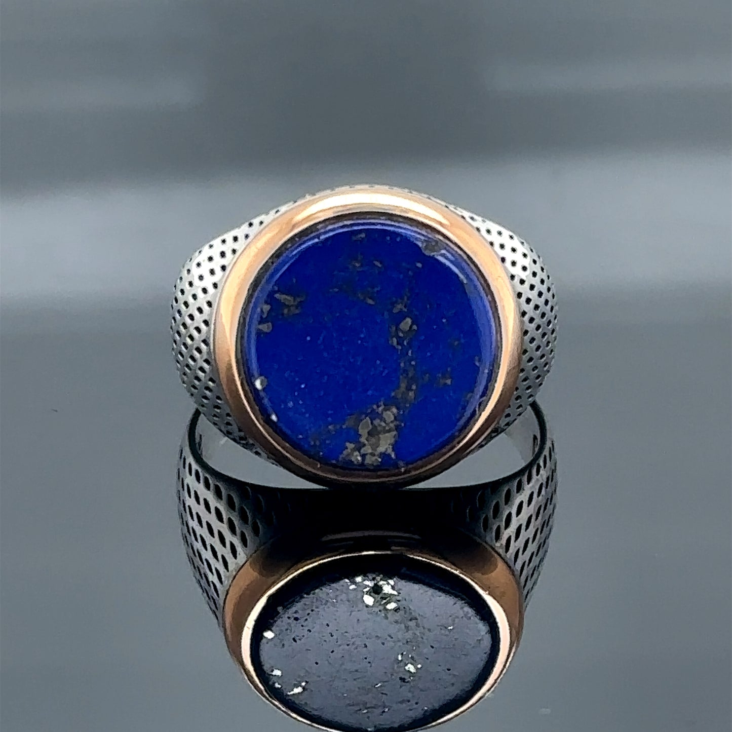 Men Silver Round Natural Lapis Gemstone Ring