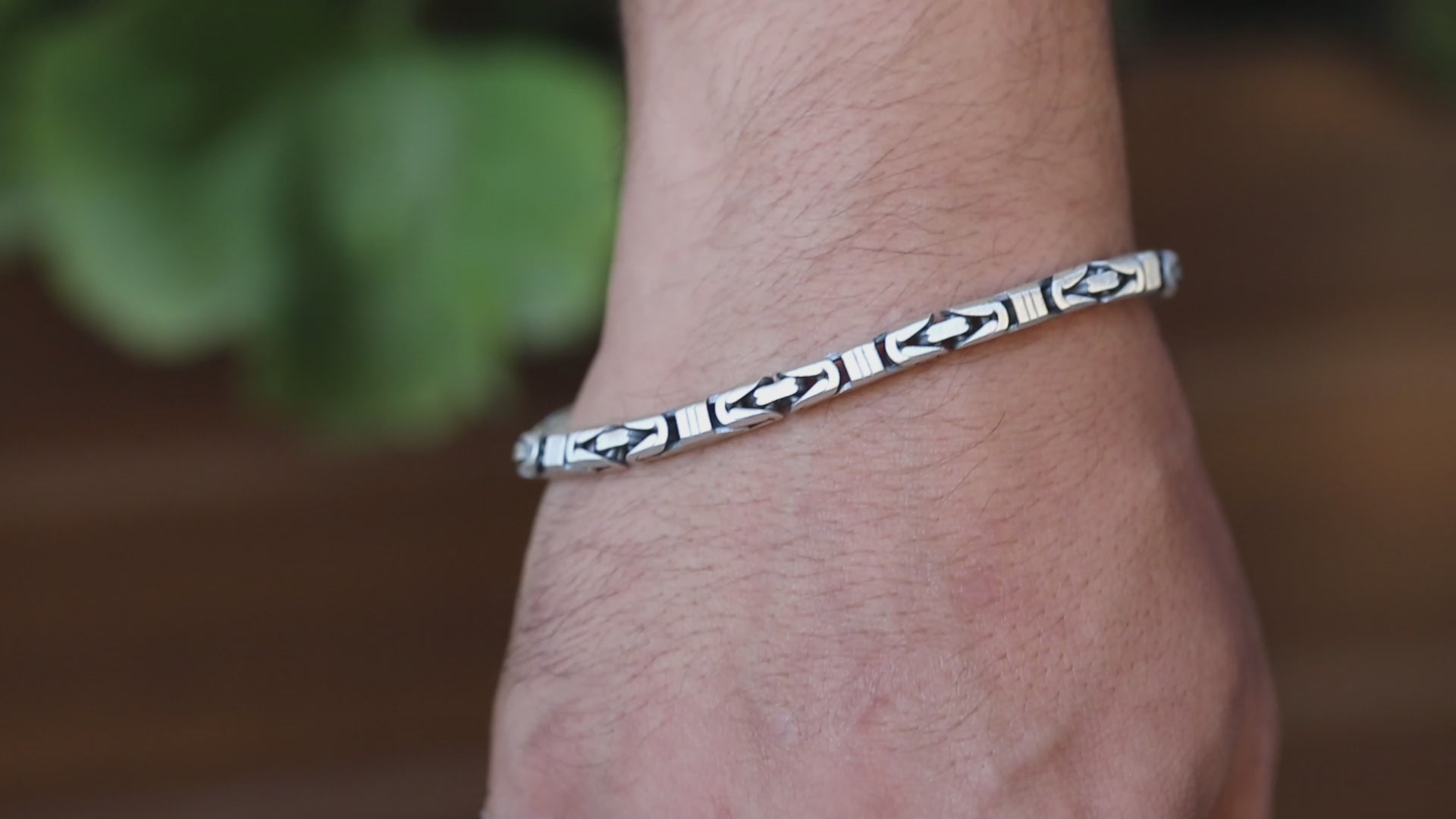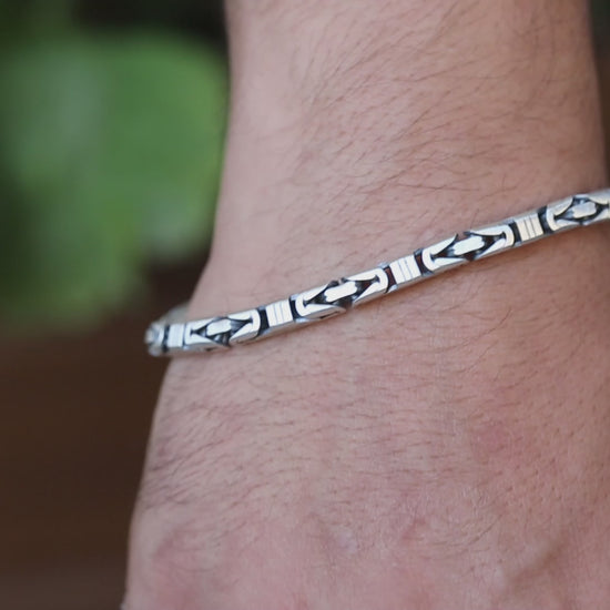Solid 925 Sterling Silver Bracelet, Viking Chain Bracelet, Engraved Chain Bracelet, Elegant Men Chain, Gift For Men, Modern Bracelet Men