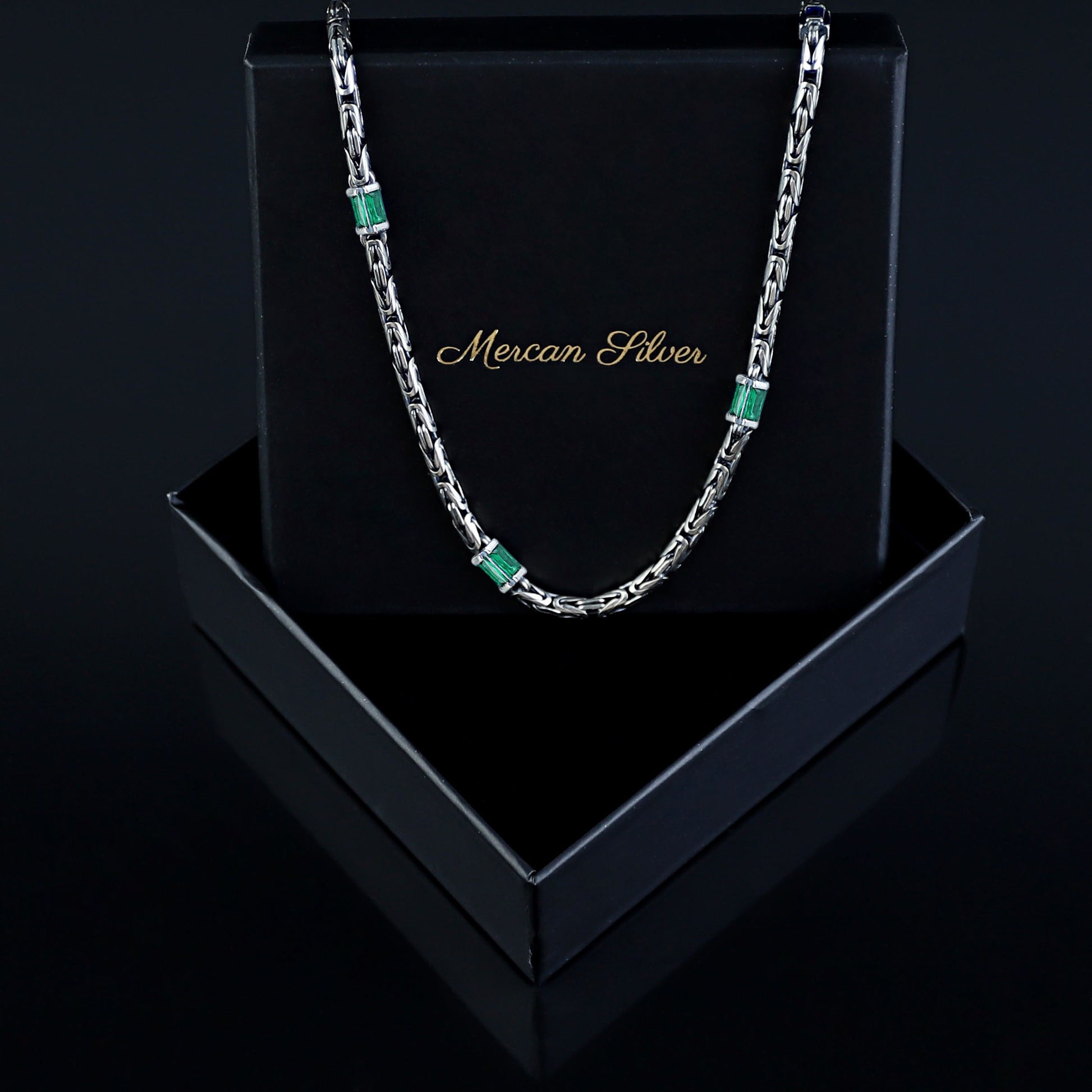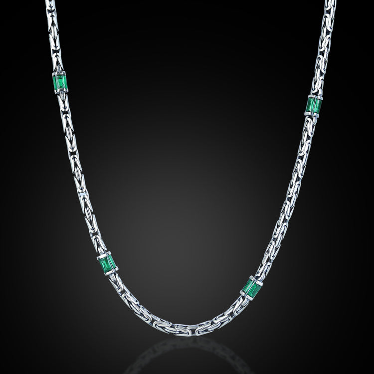 Silver Emerald Gemstone Byzantine Round King Chain Necklace