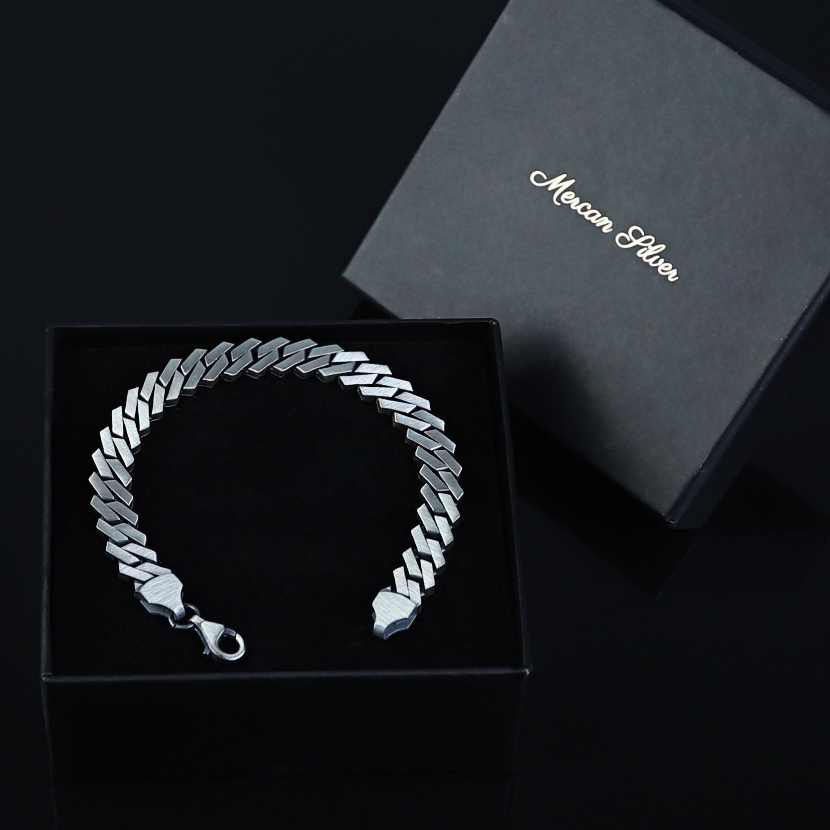 This is a robust accessory built to last. It is meticulously crafted from solid Sterling Silver, providing a substantial weight and a comfortable, reliable fit. The classic Curb Chain Men Bracelet design ensures versatility, making it suitable for both casual and formal attire.